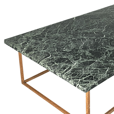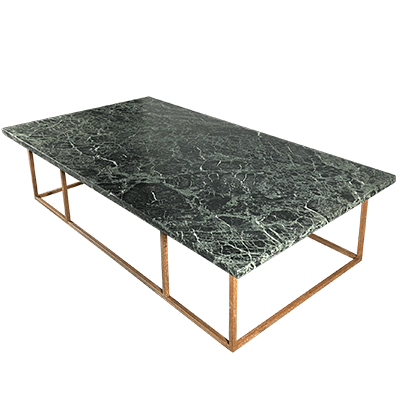 Cubierta de mármol Carrara color verde, base de acero pintado colores a escoger oro, negro y gris Oxford.